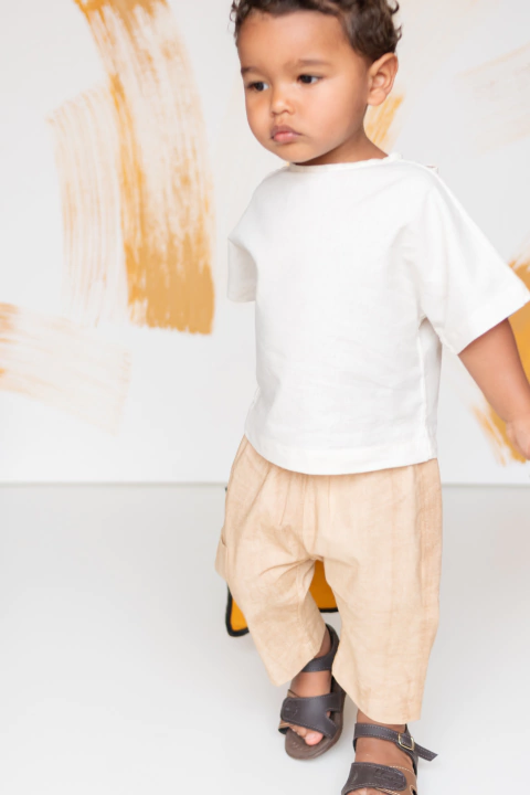 Tecido em viscose e linho, conferindo elegância e frescor. Modelagem larguinha, moderna. Para todos os guarda-roupas e todos os gêneros.